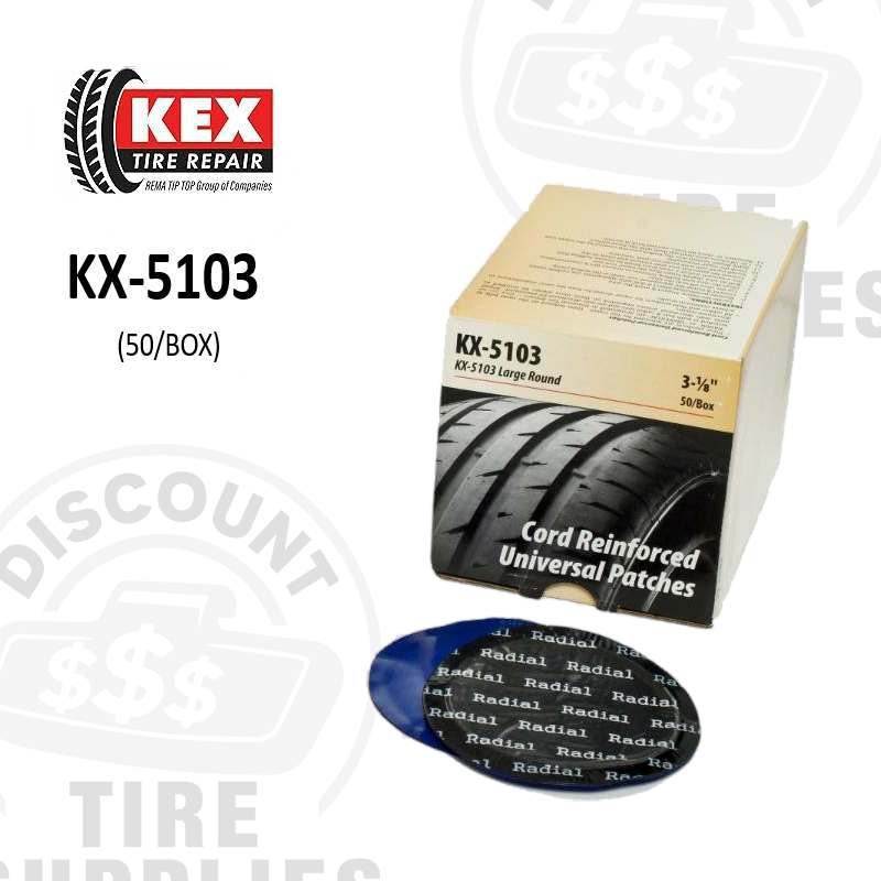 KEX Tire Repair’s KX-5103 Universal fabric reinforced round tire repair units are non-directional tire repair units suitable for placement in the tread area of tires and can be safely used in both bias and radial tires.