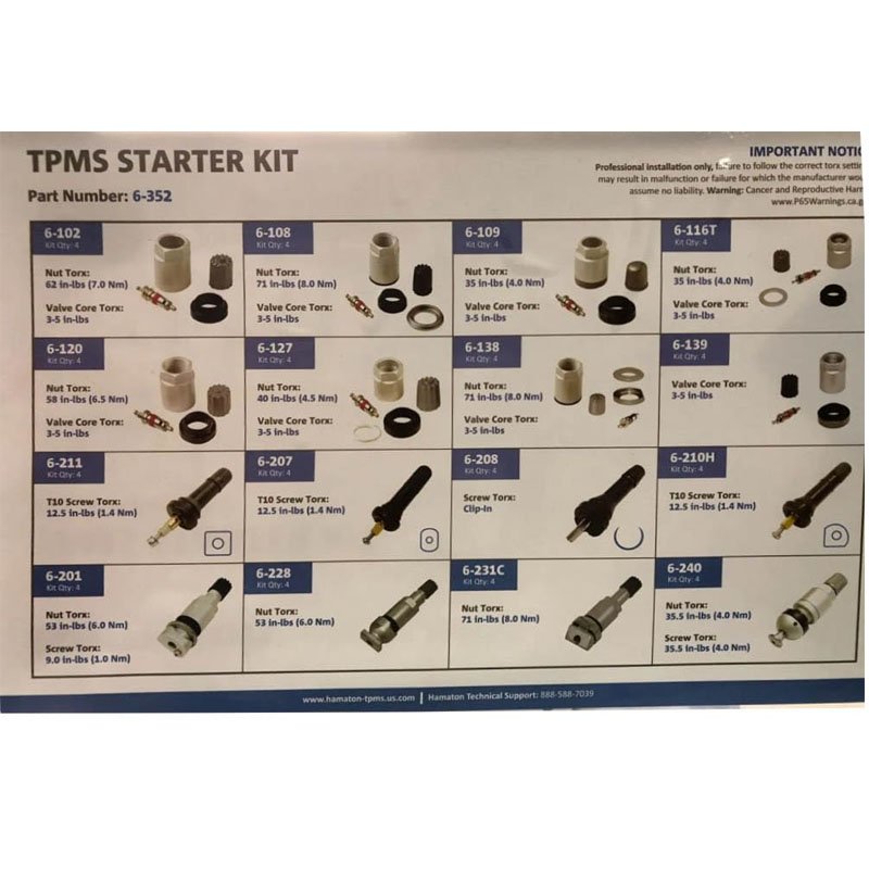 The Hamaton Starter Kit provides a selection of the most popular TPMS sensor replacement parts, covering 85% of direct TPMS-enabled vehicles in the USA to meet the TPMS servicing requirements of most tyre bays, workshops, and garages.